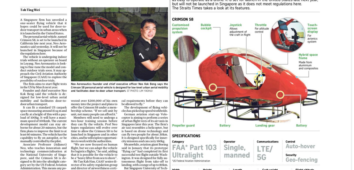 現(xiàn)如今,無(wú)人機(jī)多用于載物飛行與娛樂(lè)活動(dòng)中,梁國(guó)民教授的演講使大家意識(shí)到無(wú)人機(jī)的另一大用處——載人飛行。梁教授專于無(wú)人機(jī)載人研究多年并已研究出相關(guān)試驗(yàn)用載人無(wú)人機(jī),并受新加坡媒體進(jìn)行相關(guān)采訪。